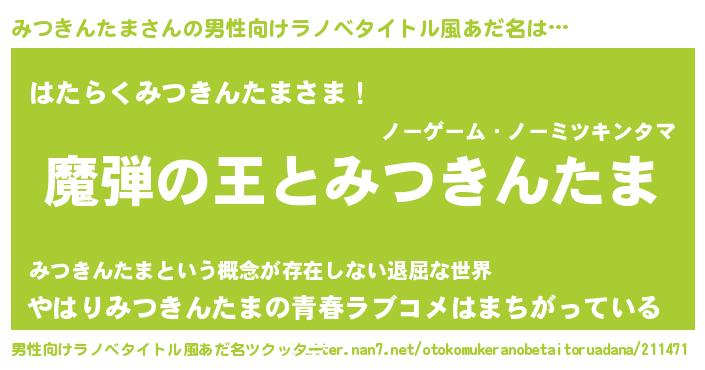 | ヒーロー風カッコイイあだ名 | 『仮面ミツダー』『愛の使者みつきんたま』 |