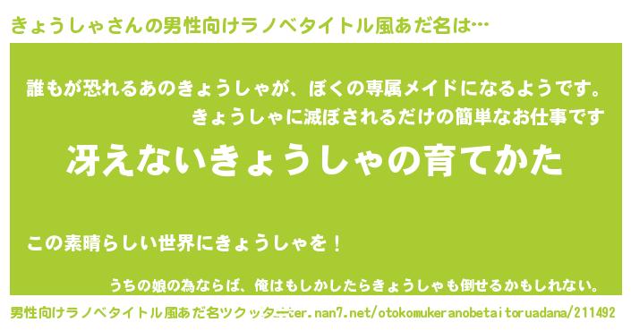 | 胡散臭い通販商品みたいなあだ名 | 『来世でも幸せになれる水素水…その名も「きょうしゃ」』 |