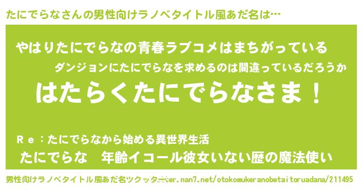 | ファンタジー風あだ名 | 『エターナルタニデラナー』『ゼタニトゥ』 |