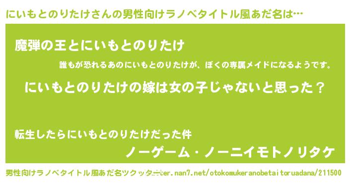 にいもとのりたけさんの男性向けラノベタイトル風あだ名をツクッター!