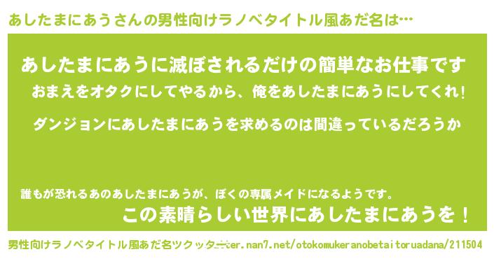 | 胡散臭い通販商品みたいなあだ名 | 『信頼と実績のネックレス…その名も「あしたまにあう」』 |