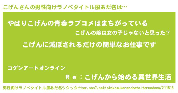 | ファンタジー風あだ名 | 『エターナルコゲンー』『ゼコゲトゥ』 |