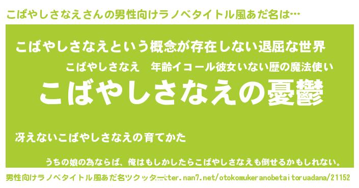 | 胡散臭い通販商品みたいなあだ名 | 『モテモテ間違いなし水晶球…その名も「こばやしさなえ」』 |