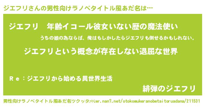 | ヘコむあだ名 | 『ジエフリ(笑)』『酢こんぶ』 |