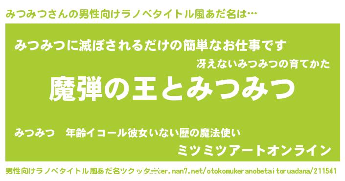 | 女子向けラノベタイトル風あだ名 | 『乙女ゲームの破滅フラグしかない悪役みつみつに転生してしまった…』 |