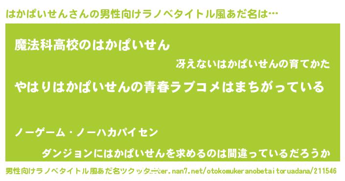 | 女子向けラノベタイトル風あだ名 | 『はかぱいせんの雑貨屋さん』 |