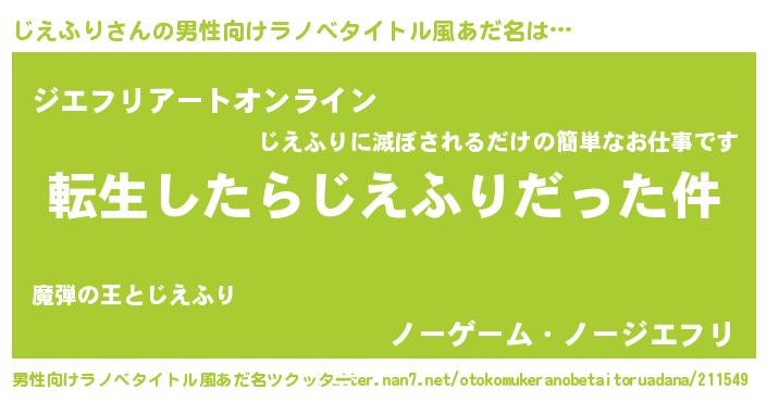 | 料理風あだ名 | 『じえふりごはん』 |