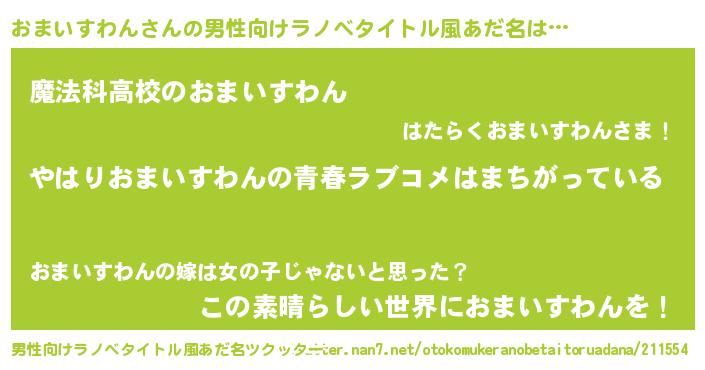 | 女子向けラノベタイトル風あだ名 | 『おまいすわんの雑貨屋さん』 |