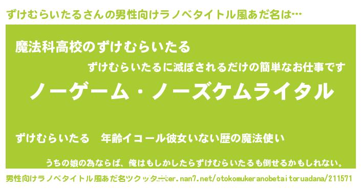 | 女子向けラノベタイトル風あだ名 | 『死神ずけむらいたるの再婚』 |