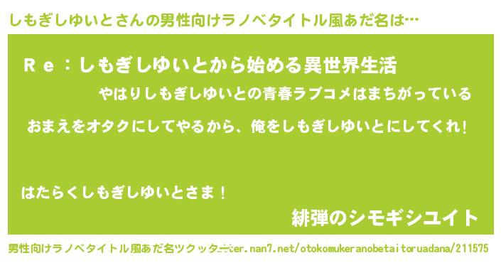 | 肩書あだ名 | 『しもぎしゆいと助手』 |