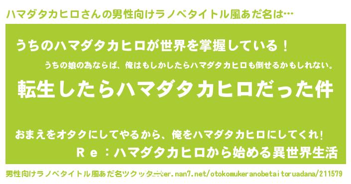 | 肩書あだ名 | 『ハマダタカヒロ少将』 |