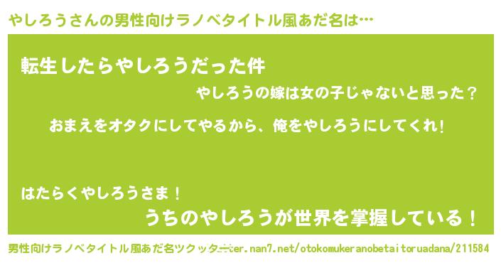| 女子向けラノベタイトル風あだ名 | 『やしろう恋絵巻』 |