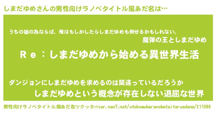 しまだゆめさんの男性向けラノベタイトル風あだ名をツクッター!