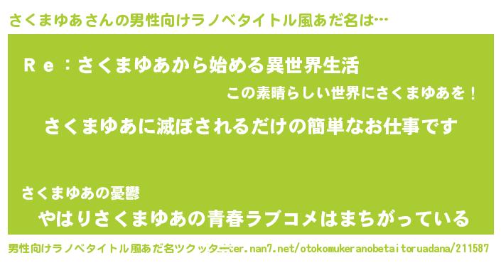 | 意味不明あだ名 | 『自称さくまゆあ』『ペロリンさくまゆあ』 |