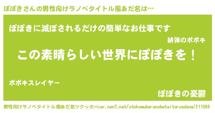 | 意味不明あだ名 | 『住所不定無職ぽぽき(10歳)』 |
