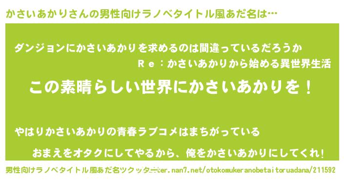 | 欧米人風あだ名 | 『ダレノガレかさいあかり』 |