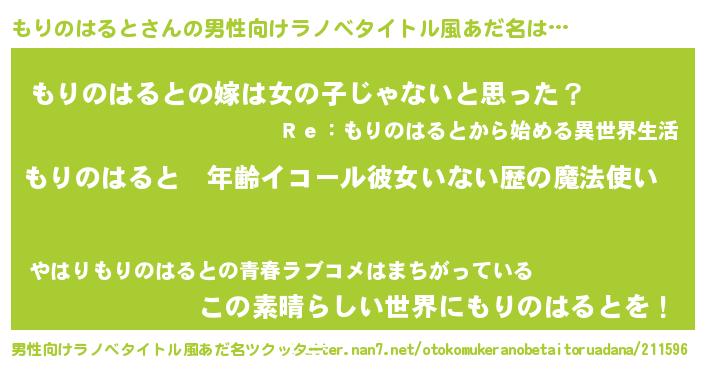 | 伝説のあだ名 | 『覚醒した魔法使いもりのはると』 |