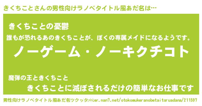 | 女子向けラノベタイトル風あだ名 | 『きくちこと恋絵巻』 |