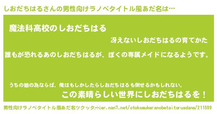 | 女子向けラノベタイトル風あだ名 | 『異世界でカフェしおだちはるを開店しました。』 |