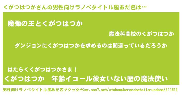 くがつはつかさんの男性向けラノベタイトル風あだ名をツクッター!