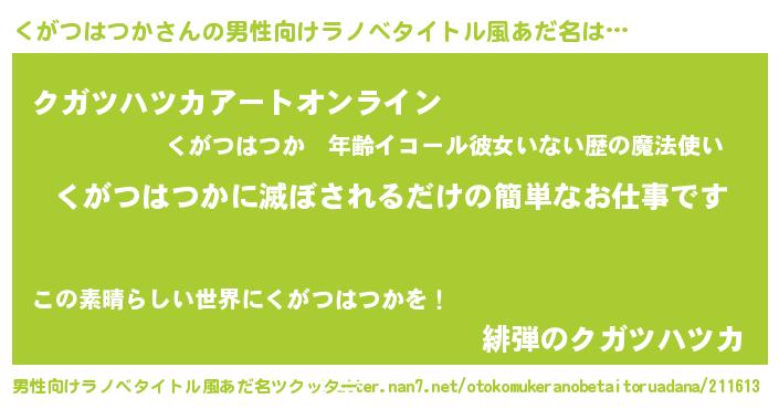 | 胡散臭い通販商品みたいなあだ名 | 『億万長者になれるブレスレット…その名も「くがつはつか」』 |