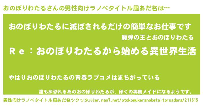| ヒーロー風カッコイイあだ名 | 『サイバー戦士オノボリワタル』 |