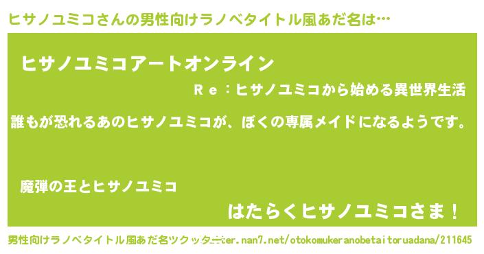 | 胡散臭い通販商品みたいなあだ名 | 『前代未聞の健康食品…その名も「ヒサノユミコ」』 |