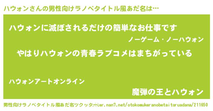| 女子向けラノベタイトル風あだ名 | 『ハウォンの雑貨屋さん』 |