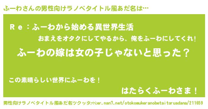 | 女子向けラノベタイトル風あだ名 | 『ふーわ様がみてる』『闇のふーわ』 |