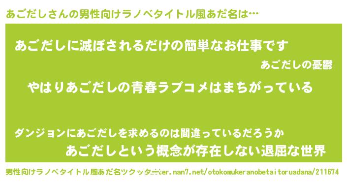 | ヒーロー風カッコイイあだ名 | 『ウルトラあごだしマン』『ネオアゴダシ』 |