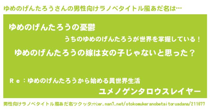 | 意味不明あだ名 | 『とにかく怪しいゆめのげんたろう』 |