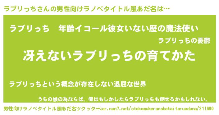 | 女子向けラノベタイトル風あだ名 | 『シンデレララブリっち家の靴箱館』 |