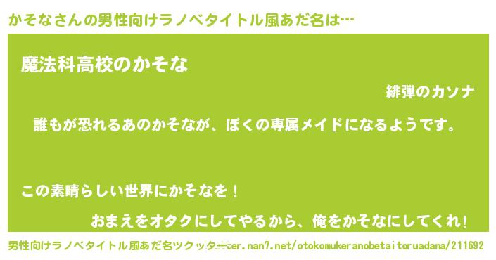 | ヘコむあだ名 | 『かそな(笑)』『かそお』『牛乳』 |
