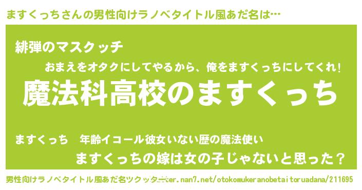 | 女子向けラノベタイトル風あだ名 | 『ますくっちなんてお断りですっ。』 |