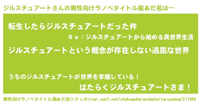ジルスチュアートさんの男性向けラノベタイトル風あだ名をツクッター!