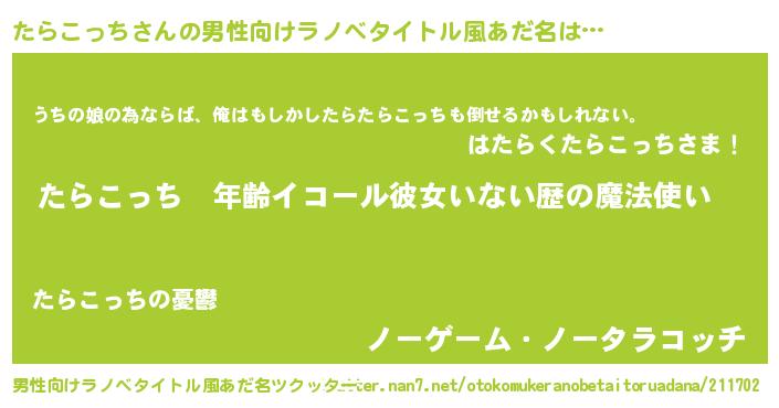 | ヘコむあだ名 | 『酢こんぶ』『たらふぇ~』『たらを』 |