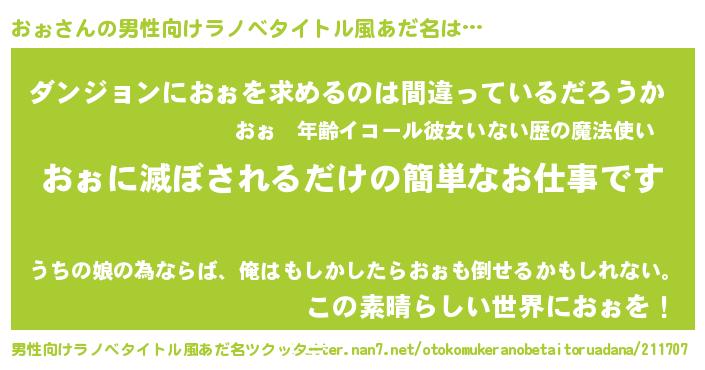 | 女子向けラノベタイトル風あだ名 | 『横柄おぉと宰相陛下』『おぉ伯爵の花嫁』 |