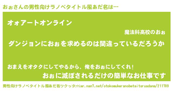 | 胡散臭い通販商品みたいなあだ名 | 『信頼と実績のサプリメント…その名も「おぉ」』 |