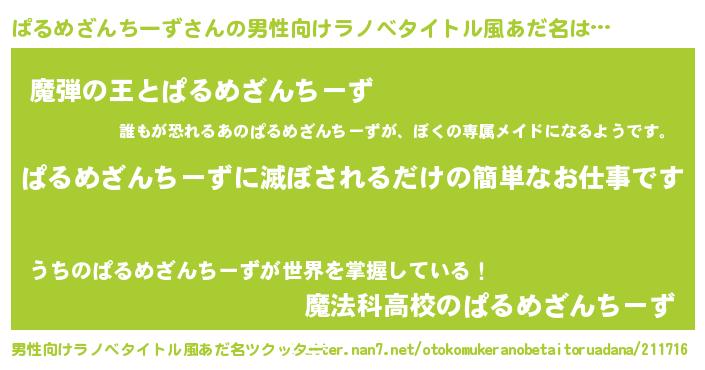 | 意味不明あだ名 | 『住所不定無職ぱるめざんちーず(77歳)』 |