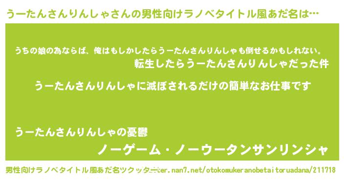 | 意味不明あだ名 | 『うーたんさんりんしゃフォーエバー』 |
