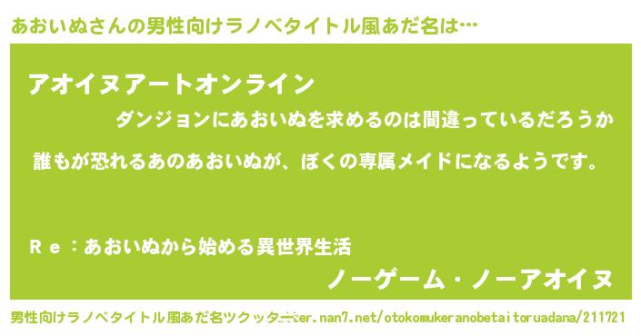 | 女子向けラノベタイトル風あだ名 | 『異世界でカフェあおいぬを開店しました。』 |