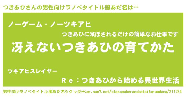 | ヒーロー風カッコイイあだ名 | 『愛の使者つきあひ』『究極戦士ツキアヒ』 |