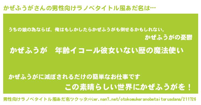 | 胡散臭い通販商品みたいなあだ名 | 『運命の人と巡り会える高級そうな壺…その名も「かぜふうが」』 |