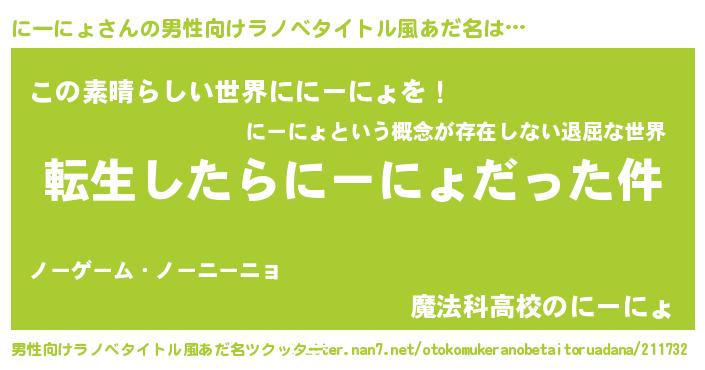 | 料理風あだ名 | 『にーにょごはん』 |