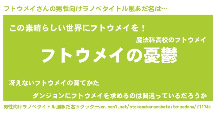 | 女子向けラノベタイトル風あだ名 | 『(仮)フトウメイのやんごとなき事情』 |
