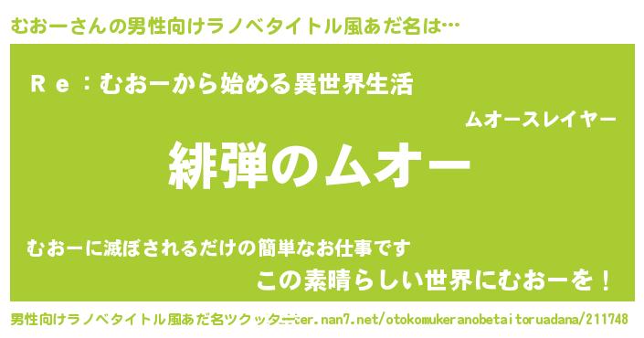 | 女子向けラノベタイトル風あだ名 | 『シンデレラむおー家の靴箱館』 |