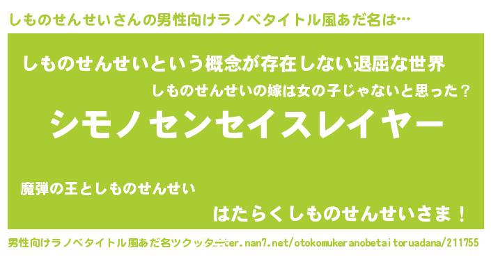 | ヘコむあだ名 | 『しものせんせい(笑)』『しもっぺ』 |