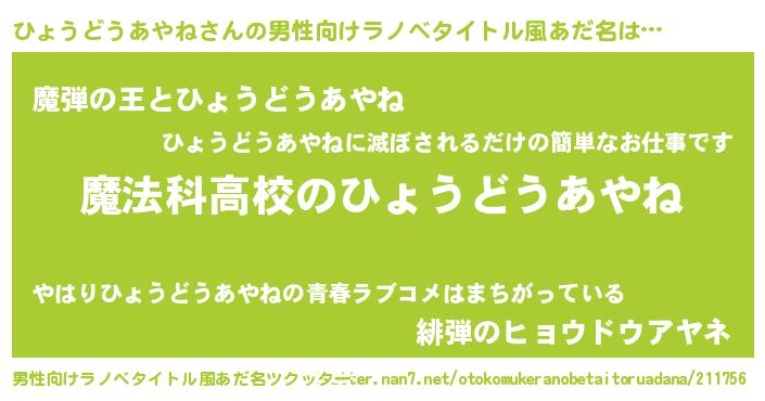 | 恥ずかしいあだ名 | 『ヒョウドウアヤネデラックス』 |