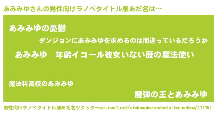 | 胡散臭い通販商品みたいなあだ名 | 『億万長者になれる霊験あらたかなお札…その名も「あみみゆ」』 |