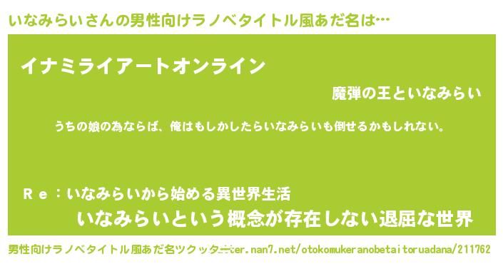 | 肩書あだ名 | 『いなみらい国家主席』『いなみらい先生』 |